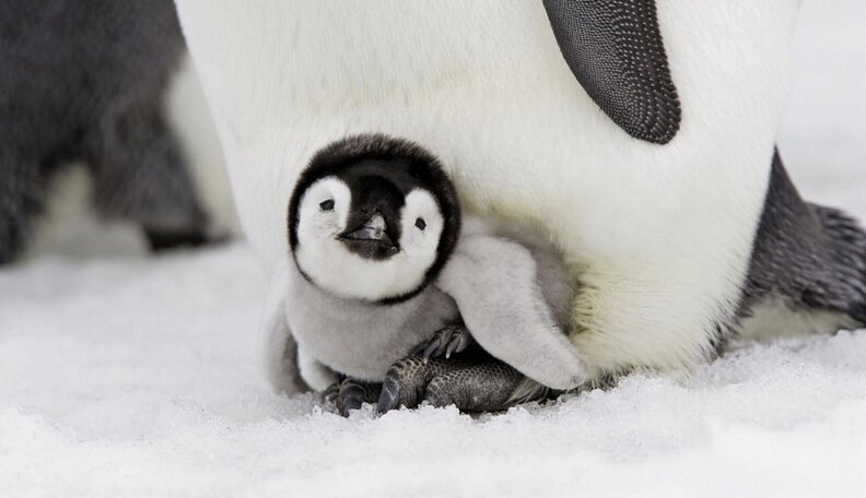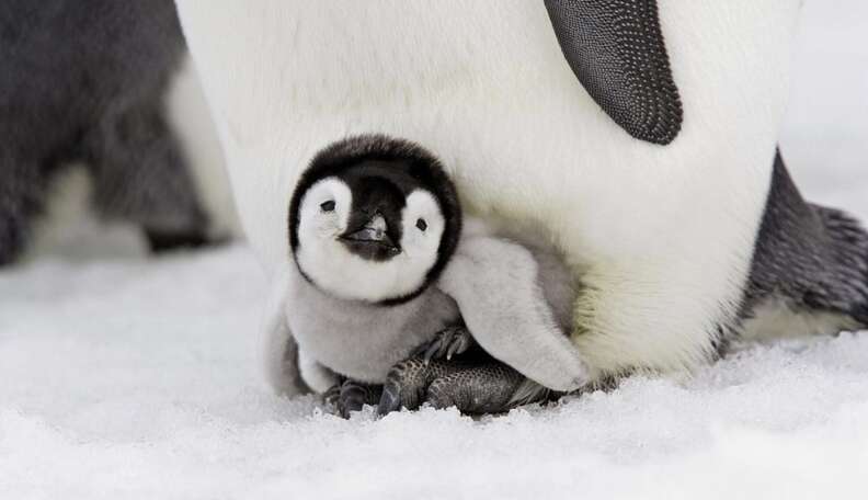 Emperor penguins get to great lengths to care for their children. After giving birth, the female emperor penguin will leave the family behind to replenish her body at sea, leaving the begetter to take on all of the parental responsibilities. For two months, the father will carry his egg around on his anxiety and forgo eating until the mother returns. When she does, she'll regurgitate some of her food for the babe, while the begetter takes his turn out at bounding main. Cooperative parenting at its finest!