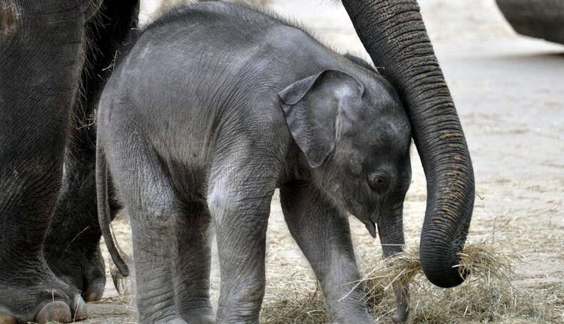 Elephants give new meaning to the phrase "it takes a hamlet to raise a child." The baby ends up with an entire herd of mothers, all of whom take turns watching over each other'due south children. The term for these other female person elephants is "allmothers" and they help ensure the newborn'south survival by taking the load off of its mother. It frees her upward to rejuvenate and obtain plenty sustenance to provide milk for her child. After carrying a nearly 300 pound baby for 22 months y'all'd probably demand some time off, too!